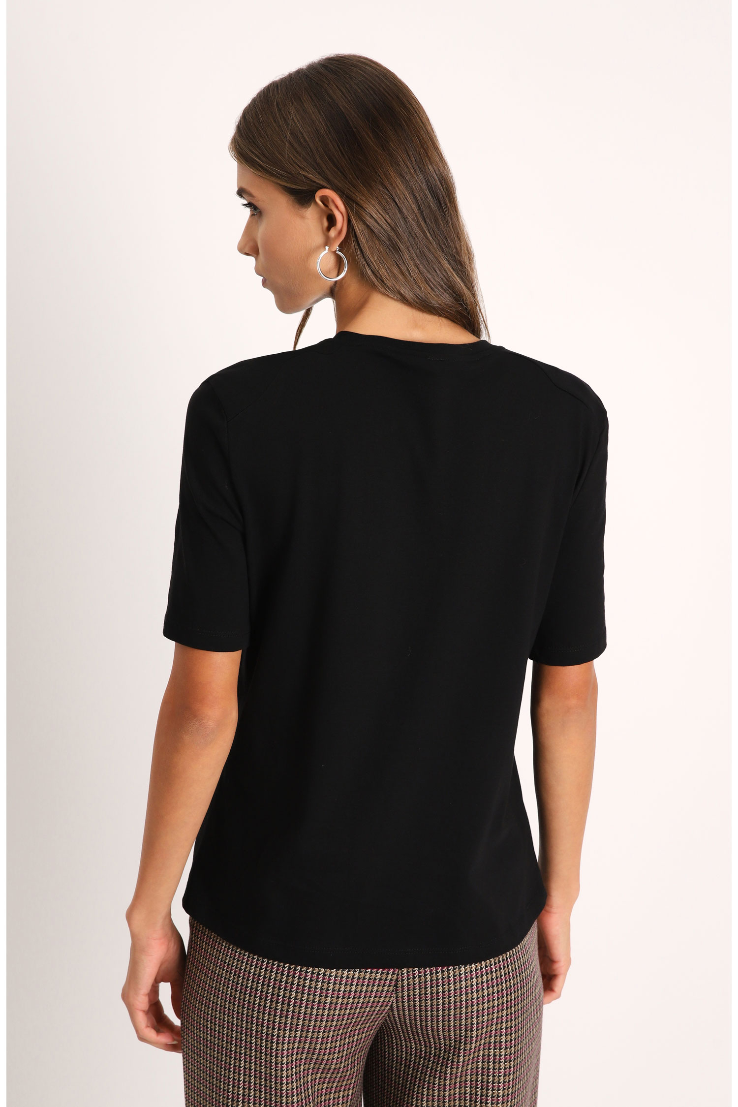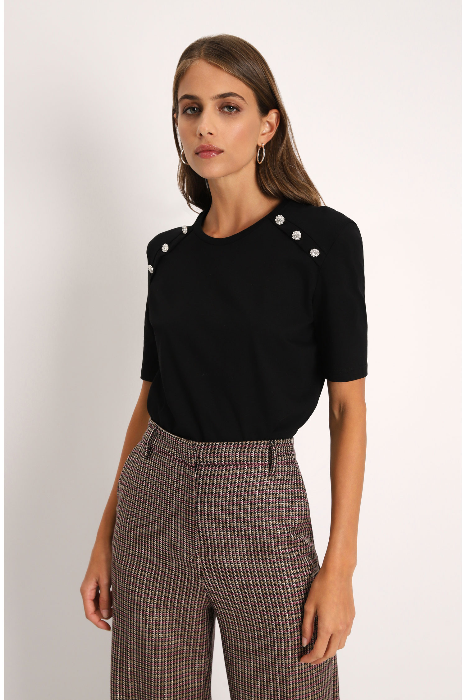 חולצת טריקו קלאסית עם שרוול 3/4 וכפתורים מנצנצים בכתפיים.