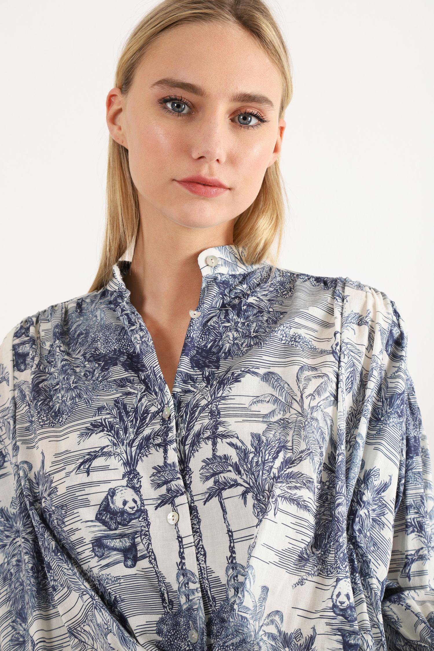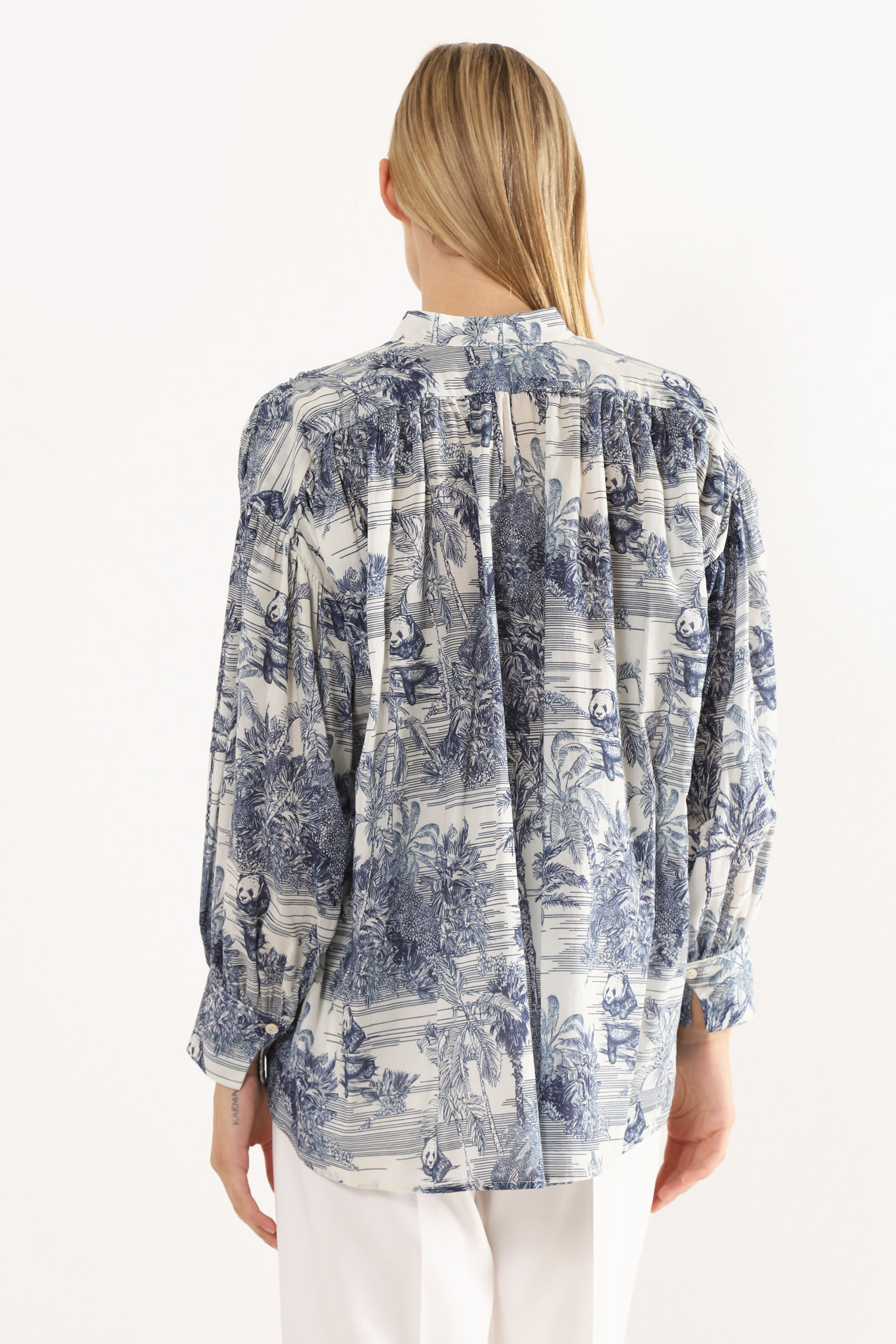 חולצה מכופתרת אוברסייז עם צווארון סיני, שרוולים מכווצים ואפשרות לקשור במותן