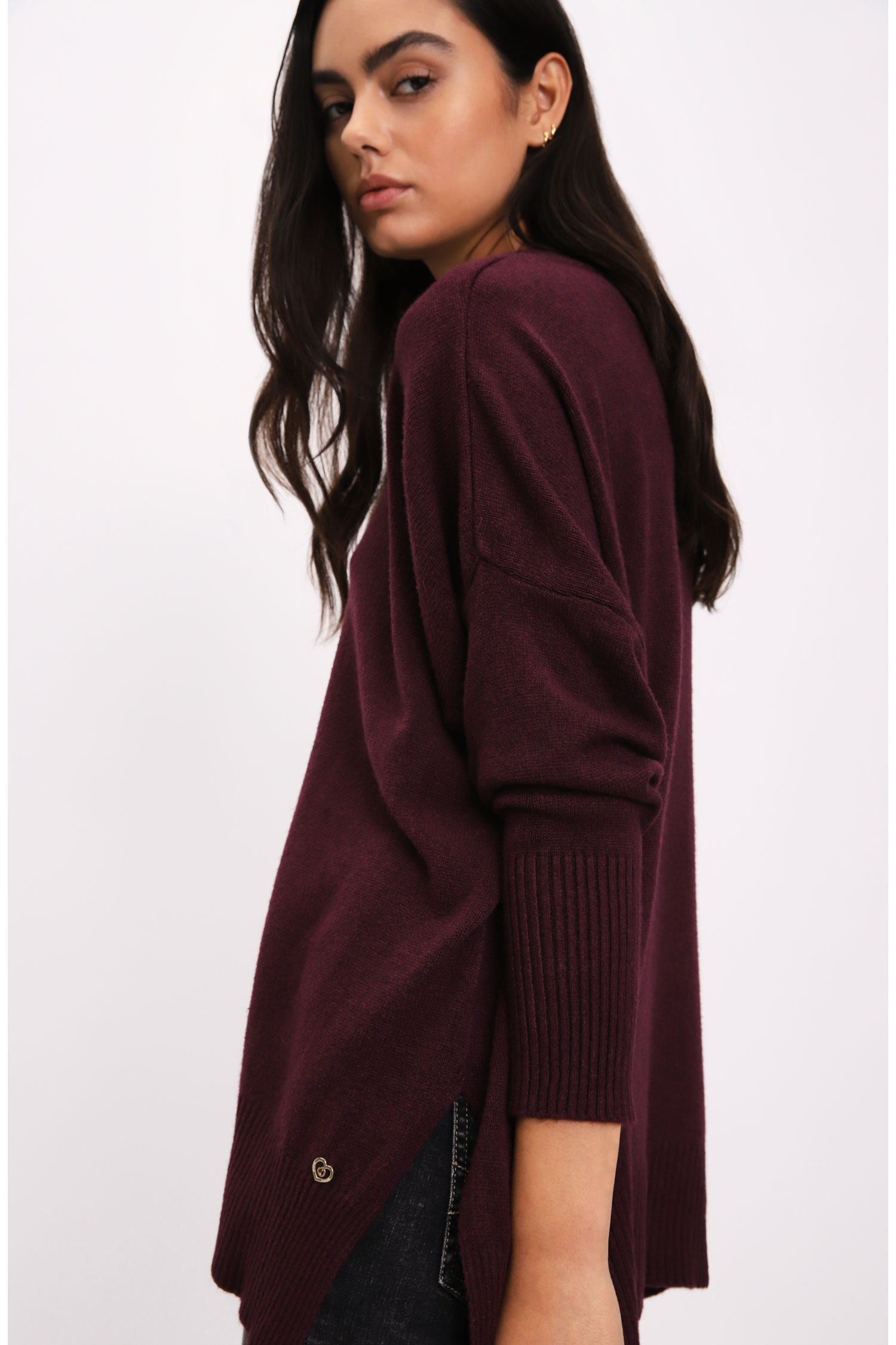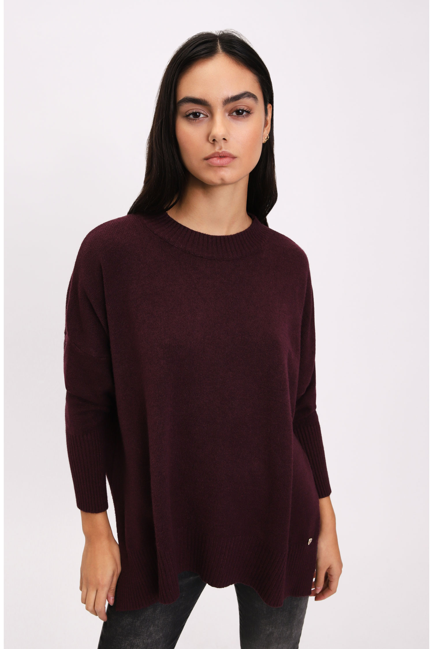 דף הבית > חנות > Oversized pullover w/ slits in bordeaux