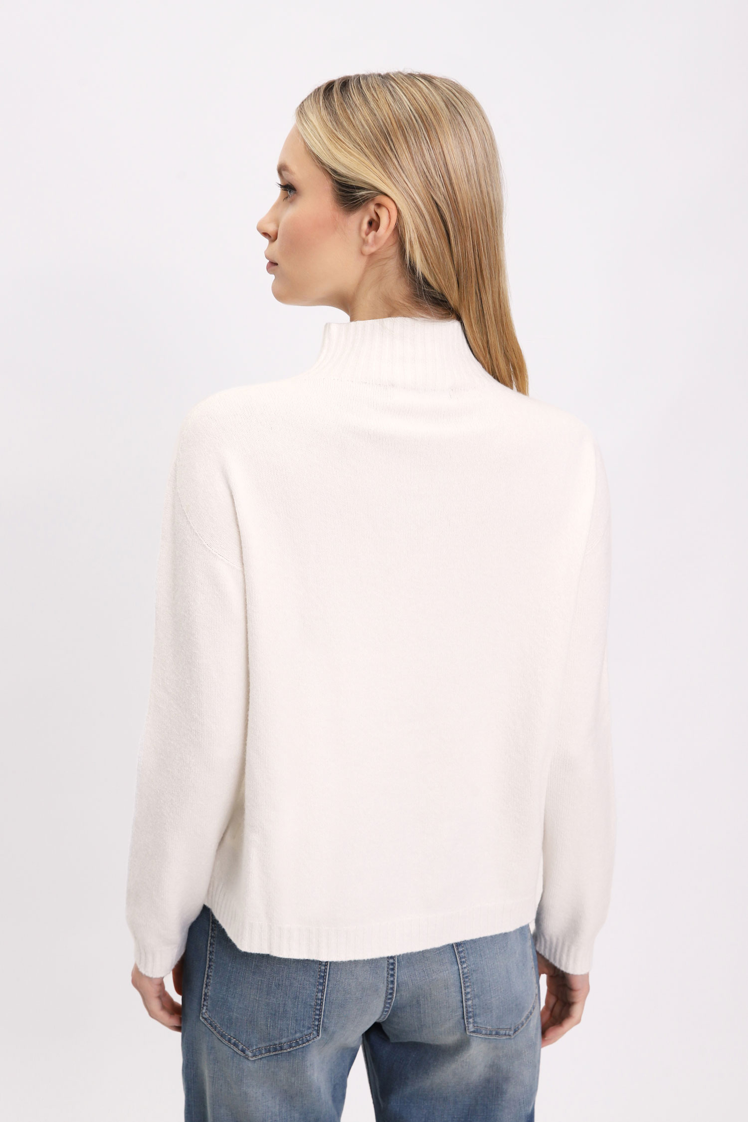 סוודר אוברסייז עם צווארון גבוה וכיס קנגורו.