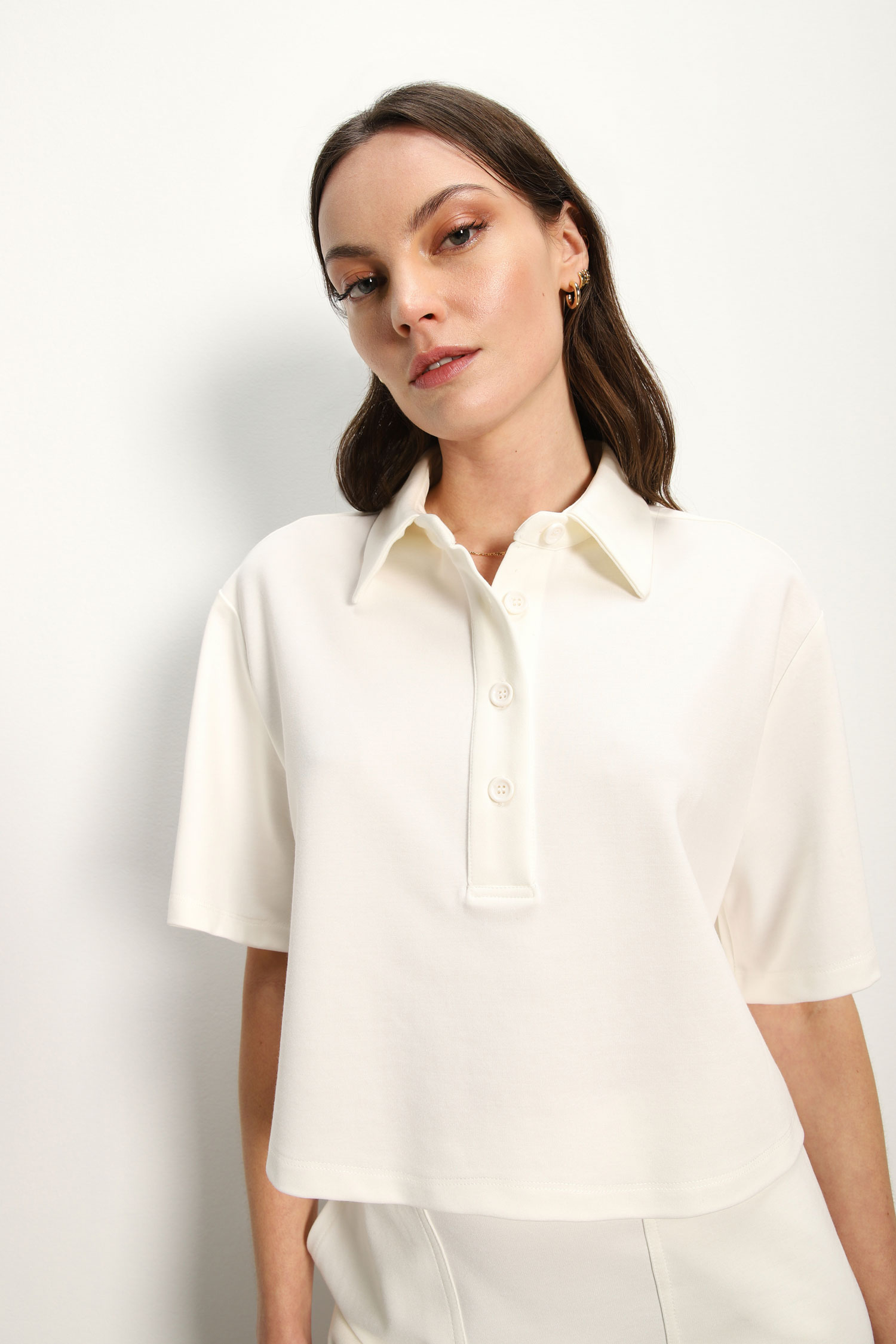 חולצת פולו עם צווארון קלאסי, כפתורים למחצה ושרוולים קצרים אוברסייז.