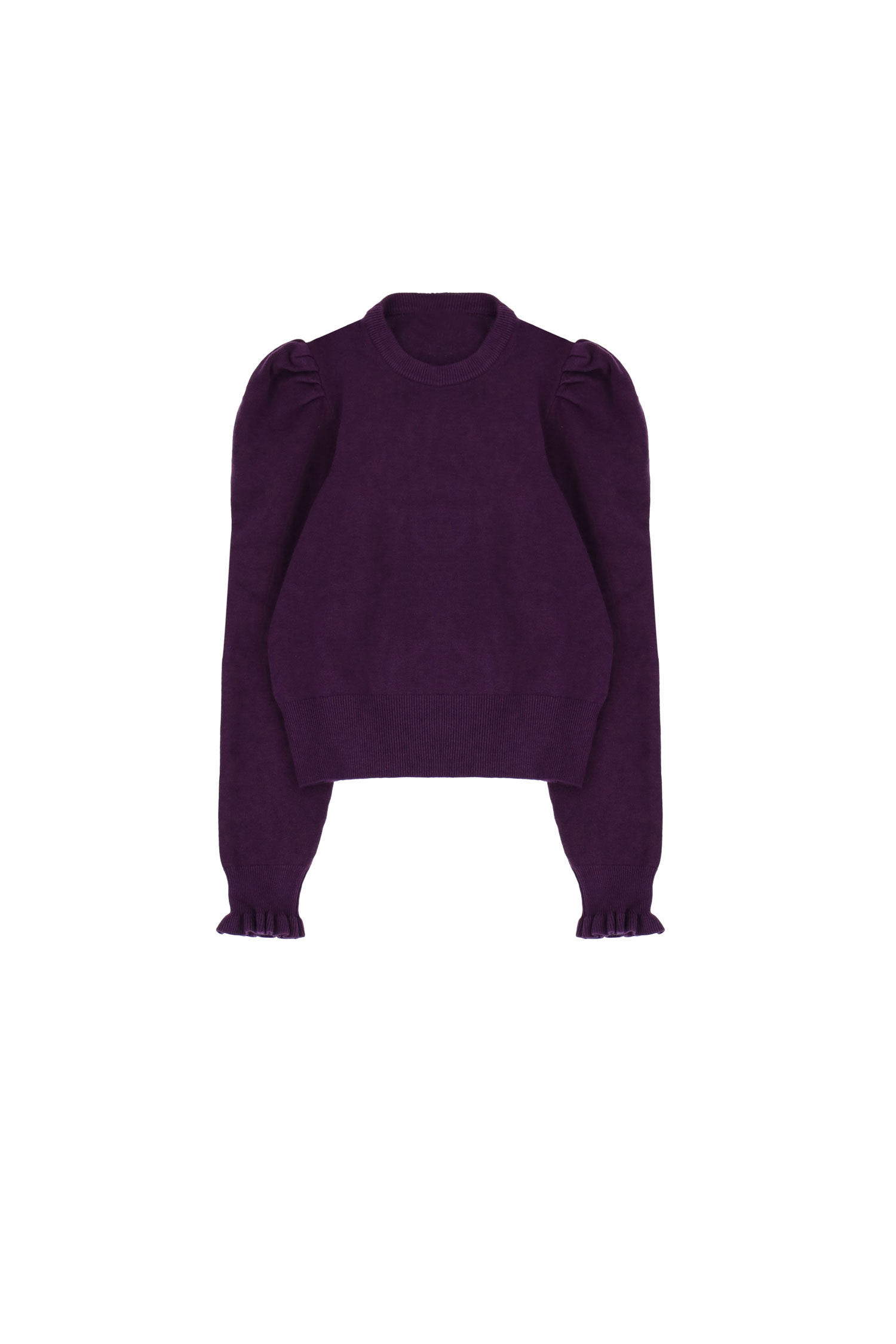 סריג קצר קרופ עם שרוולים מכווצים וגימור מסולסל בשרוולים.
