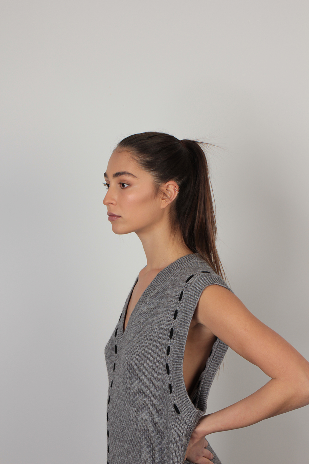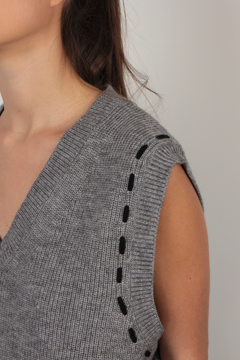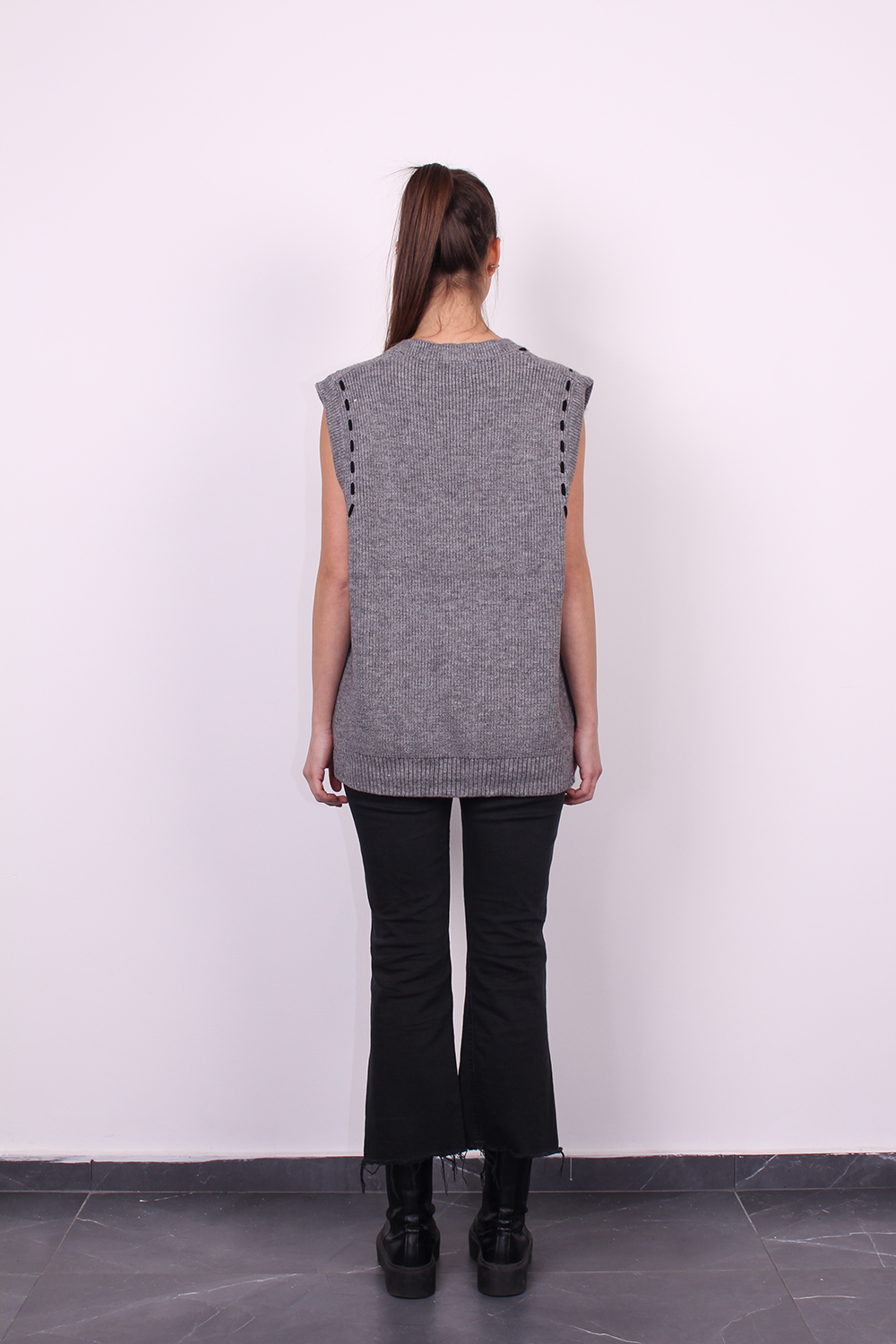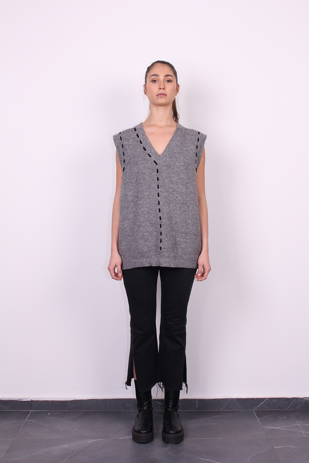 אפודה דמוי צמר עם תיפור סרוג בתוך הבד