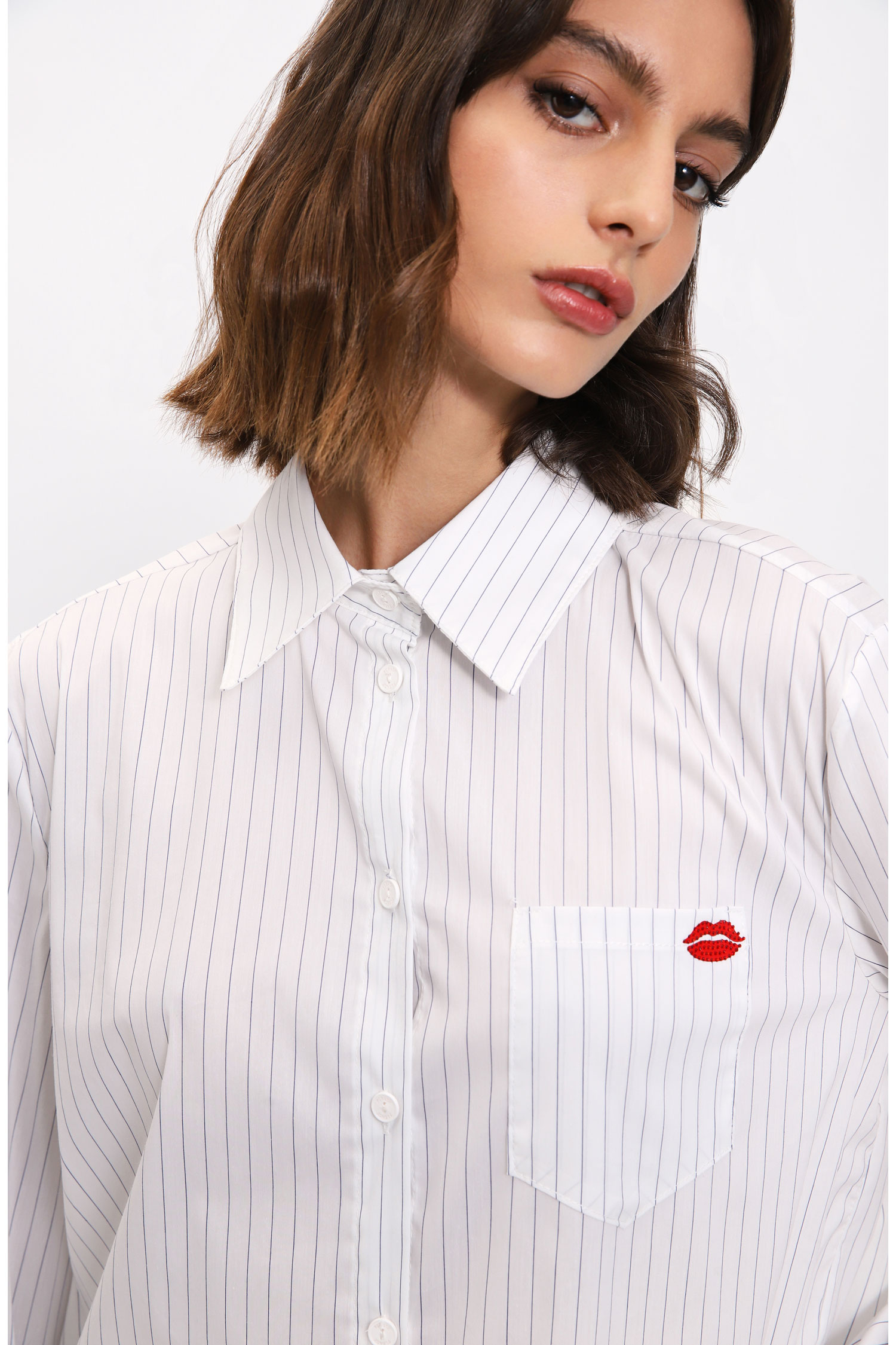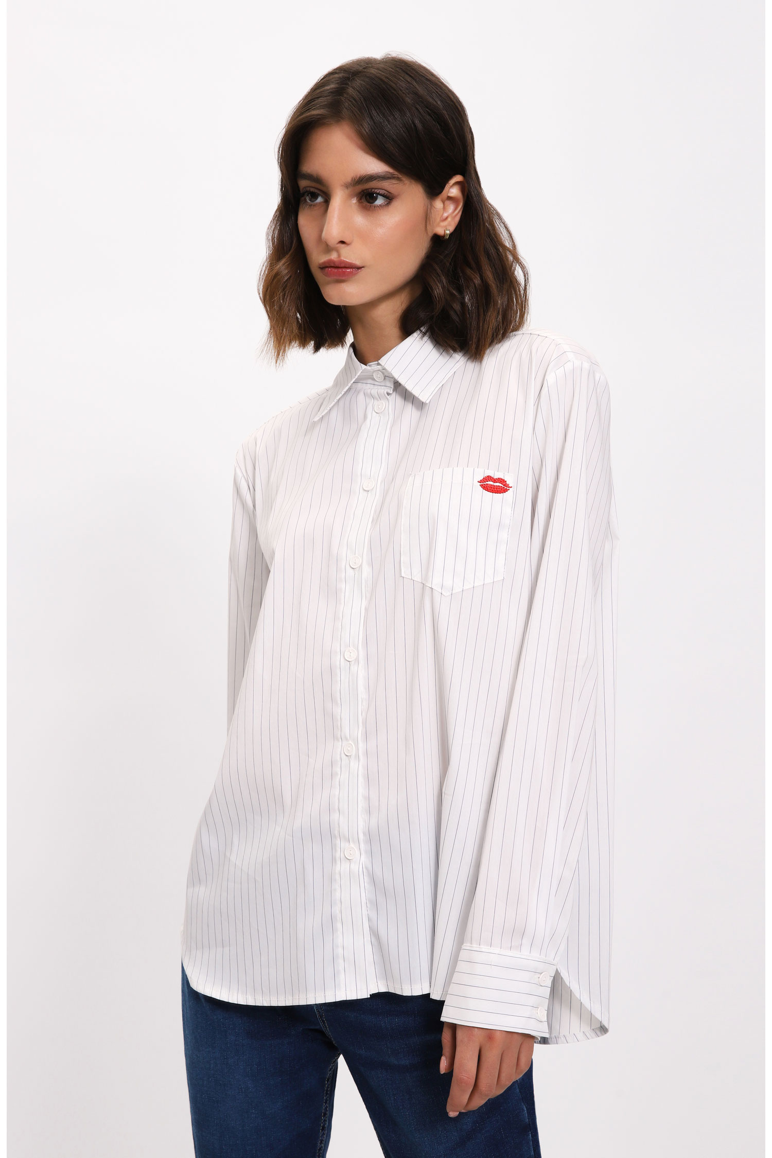 Vertical-striped shirt with appliqué